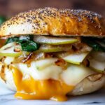 Generously butter the outside of each bagel half to ensure a crisp, golden crust. On the inside, layer the fragrant caramelized onions first, followed by neat slices of juicy pear and crisp apple. Next, pile on the shredded sharp cheddar cheese, allowing it to blanket the fruit and onions. If you choose, drizzle a little honey over the fruit layers; this simple addition creates a heavenly sweet-savory contrast that elevates this sandwich to the next level.