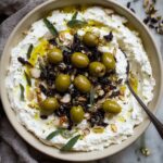 This Ricotta with Crushed Olives, Almonds & Lemon is a quick and flavorful appetizer that combines creamy ricotta cheese with the briny tang of crushed green olives, crunchy chopped almonds, and refreshing lemon zest. Enhanced with fresh lemon juice and olive oil, it creates a perfect spread or dip for crackers, sliced vegetables, or toasted bread, garnished optionally with fresh herbs for added brightness.