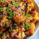 - Garnish and Serve: Sprinkle the coated cauliflower with sliced green onions and sesame seeds for garnish. Serve immediately and enjoy!